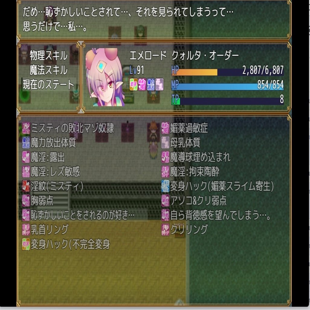 →敵のエロ攻撃が避けられなくなる→感度が上がり能力が下がる